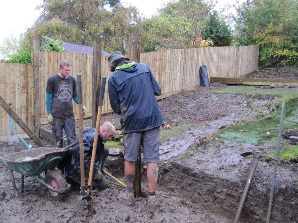 A new retaining wall is being built out of concrete breeze blocks, which will be rendered at a later stage.