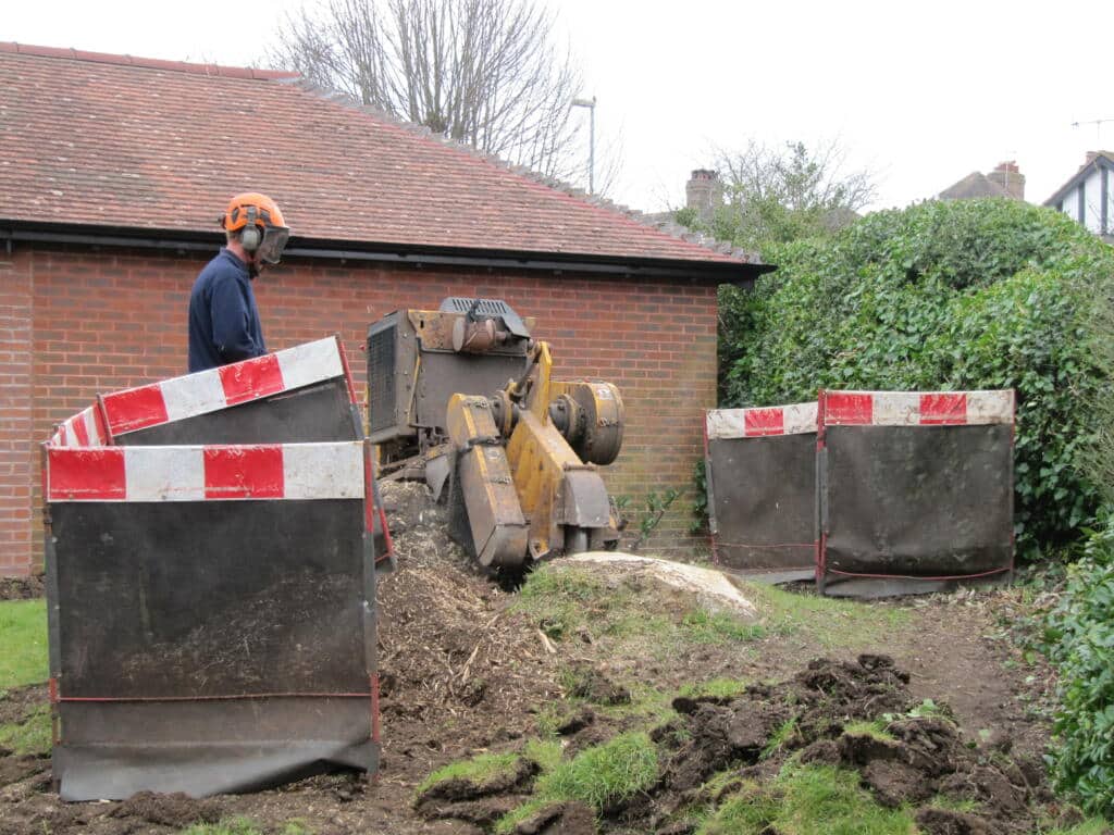 Whilst we were working on the borders we were also scalping the old turf, and Stump Busters were called in to mash up an Ash Tree stump to dust. Unfortunately it had Ash Die Back and had to be removed.