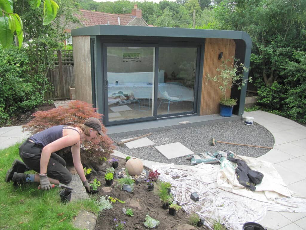There were steps down to a lower level already in situ, with the owners adding a lovely, pod style studio. The ground was scalped of ...