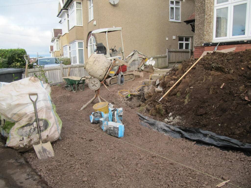 The property is being developed, with the customer requiring a pathway from the side gate to the garage and driveway, planted borders, and a concrete ...