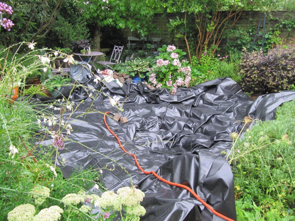 We lined it with a durable liner, removing shoes to make sure that we didn’t puncture it. It was then filled with tap water. The ...